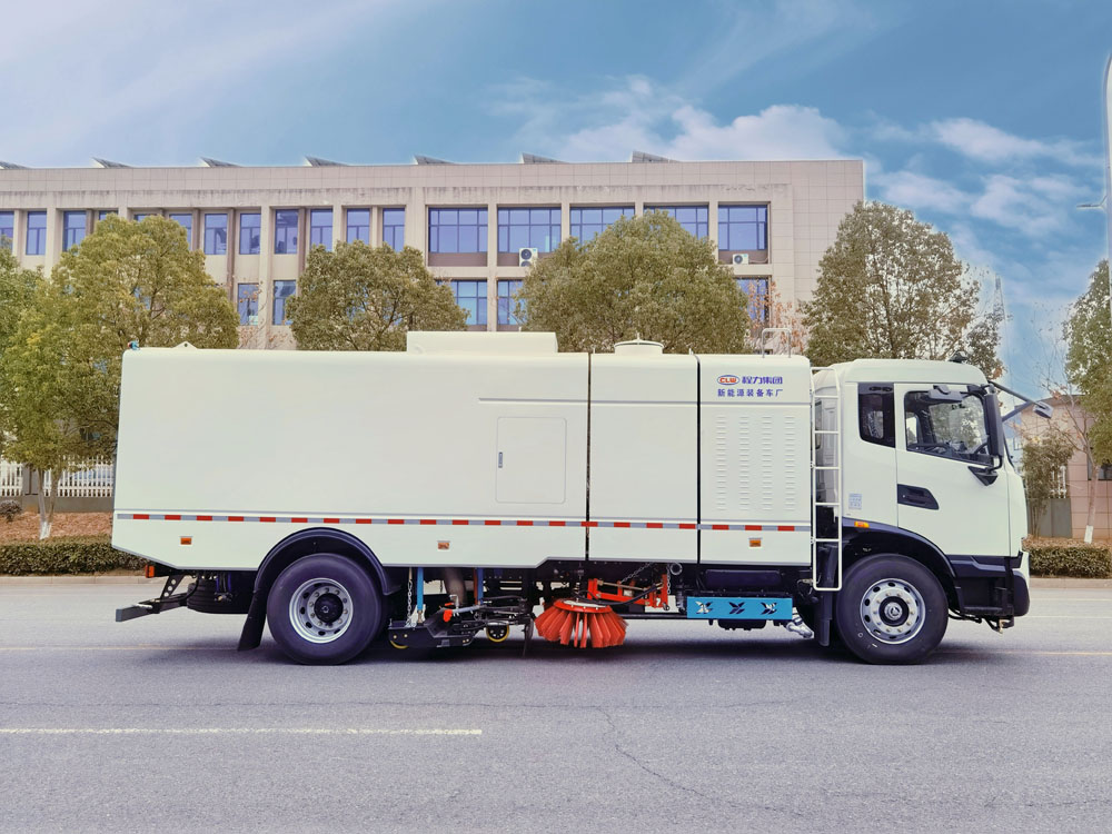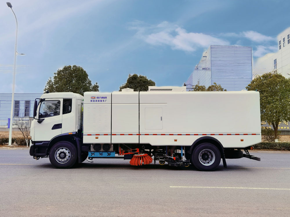 四、其他說明: 東風天錦純電動洗掃車是我公司研制開發的集掃路車和高壓清洗車功能于一體 的高效環衛車。整車動力強勁,結構先進,掃、吸、洗相結合,作業效果好。一次作業,三重 收獲,道路清掃、路面高壓清洗、垃圾污水收集一次完成,此洗掃功能解決了不可視垃圾清理 的作業難題,從源頭上遏制道路揚塵,還原路面本色。