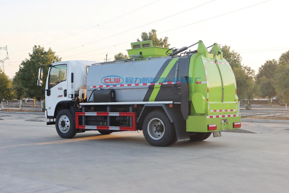 該車特點 由于餐廚垃圾車上裝結構復雜,自質量較大,降低餐廚垃圾車自質量,提高其載荷 利用率,將降低車輛運營成本。因此采用高強度材料,以降低上裝自質量;擋泥板、裝飾件、蓋 板等輔助件采用密度較小的注塑件,采用集成化程度較高的零部件,以減少空間占用和自質量, 同時有利于改善液壓系統的工作性能。專人試車;模擬各種復雜工作環境,所有壓縮發車前實物測試。