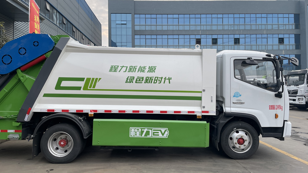 四、其他說明: 東風凱普特純電動壓縮式垃圾車,該車裝備有垃圾箱體,液壓機構及垃圾裝填器,用于將垃圾自行壓實裝入,轉運和卸料功能;