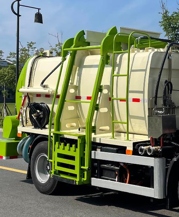 垃圾箱可實(shí)現(xiàn)箱內(nèi)餐廚垃圾固液的初步分離,并采用大容積污水箱,提高產(chǎn)品裝載量;