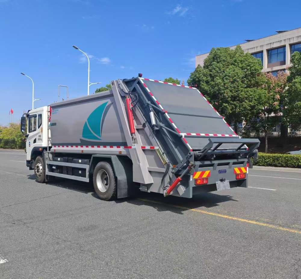 四、其他說明: 采用國內(nèi)領(lǐng)先技術(shù)高強度的 U 形整體成型桁槽 ,作為垃圾推板的活動導(dǎo)軌 ,受壓能力強 ,抗變形 能力好。 污水分離 :采用導(dǎo)流式污水收集裝置 ,可將填料器與垃圾箱體之間因密封膠條失效而滲漏的污水引流至專用 污水收集箱中 ,有效防止因污水泄漏而造成的二次污染。 容積更大 :垃圾箱體采用弧形設(shè)計 ,美觀 ,結(jié)構(gòu)性能強