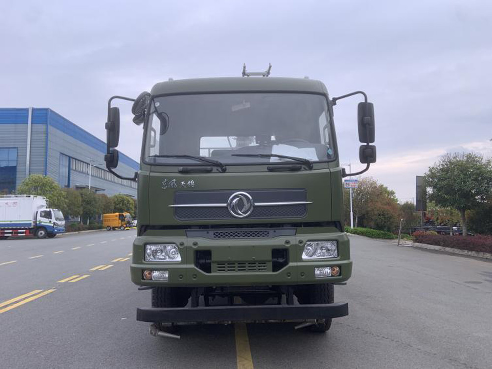一、底盤配置: 采用東風天錦DFV2163GP6DJ車身,配置東風康明斯B6.2NS6B210發動機254/210馬力,國六排放標準,軸距4500,4700(mm),整備質量9.2噸,額定載質量7.095噸,五擋變速箱,帶動力轉向,帶原廠空調,車身或駕駛室型式,天錦越野底盤,帶臥駕駛室,空調,帶電動玻璃、方向助力器、前橋 3.8T、后橋 10T、斷氣剎、ABS,發動機型式,六缸、直列、水冷、四沖程、增壓柴油機,驅動型式:4×4。該車上黃牌,城區道路請注意限行標識。