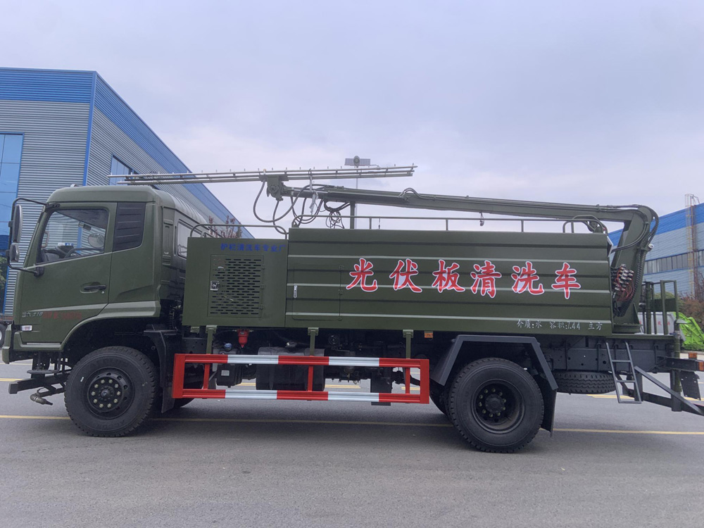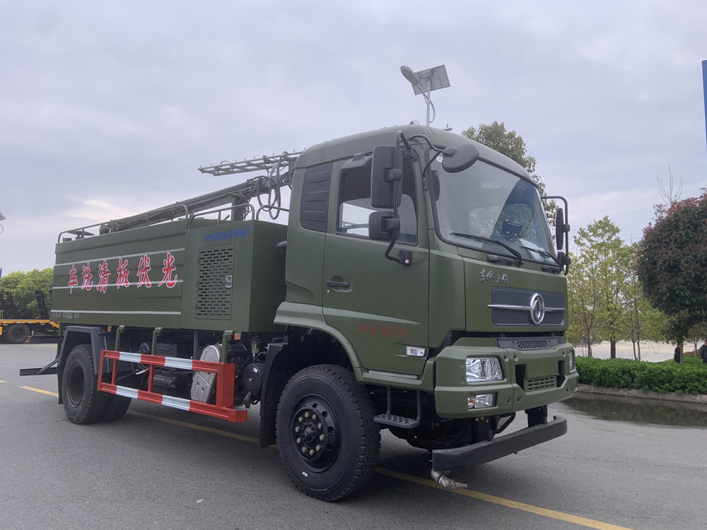 四、其他說明: 太陽能面板清洗車采用東風越野四驅底盤,它適用于各種路面灑水、噴霧、 降溫、除塵、沖洗,主要用于光伏面板、 隧道墻壁清洗,同時可用于路面養 護、園林綠化及應急消防、 運輸飲水等。