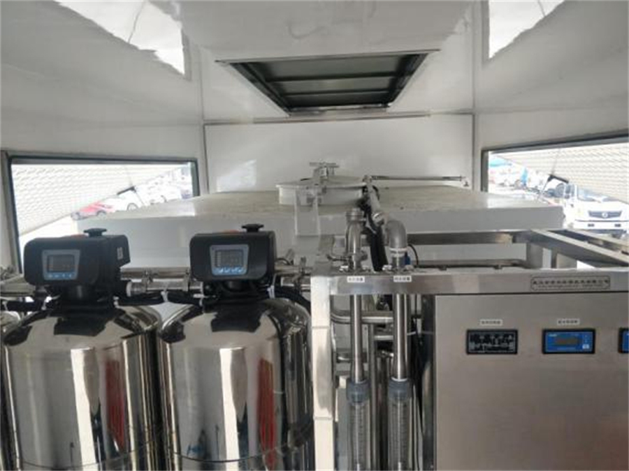 凈水廂體分為前倉熱水鍋爐倉,與后倉凈水倉,凈水倉由6立方不銹鋼水箱,與凈水機組,發電機組,水帶架,管路電氣系統組成。