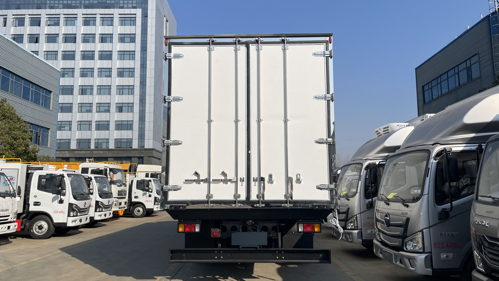 二、廂體配置:采用我司《晶龍工藝》專利技術——1200噸液壓加熱固化設備一體成型生產線制造,廂體保溫技術達到國家A級標準,廂體尺寸:7900,8200×2420,2450×2550(mm)。工藝特點:1、廂板采用全密封樹脂膠粘連聚氨酯發泡板高壓加熱固化而成,厚度8cm;2、廂板內外面料為2.5mm厚新款納米玻璃鋼(不吸光,隔熱性好,硬度強,抗氧化);3、粘連輔料為玻璃纖維絲布;4、無空隙填充聚氨酯發泡保溫材料;5、全密封樹脂膠粘連;6、預埋實木加固廂體;7、防銹處理槽鋼框架支撐;8、鋁合金包邊、不銹鋼包角;9、內部加裝LED照明燈及廂體示寬燈;10、后門框、鉸鏈、鎖件均為不銹鋼材質;11、后門加裝防撞膠塊;12、采用三元乙丙橡膠密封條。