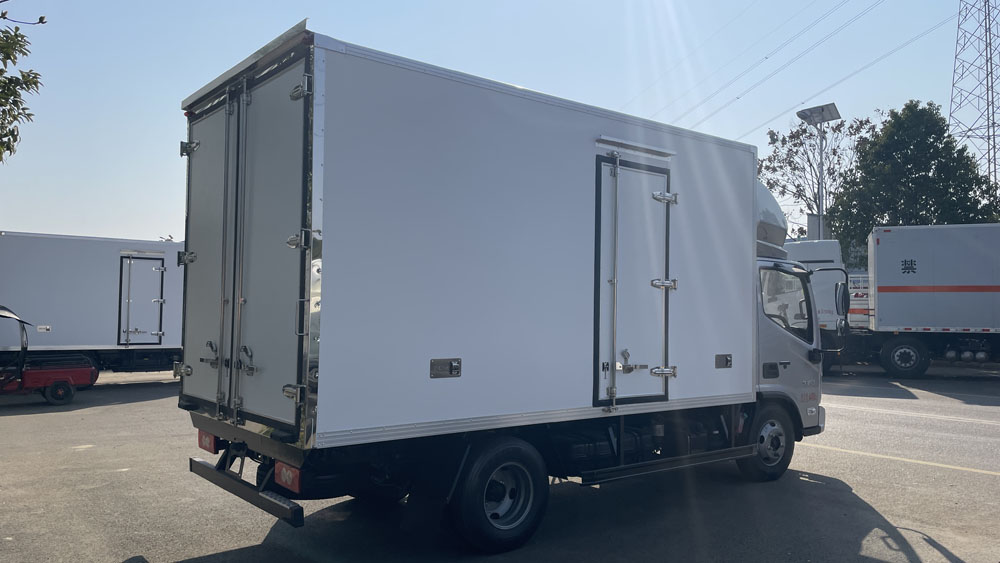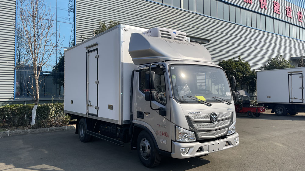 福田歐馬可4米冷藏車可在廂體頂部選裝軌道肉鉤、及在廂體底部選裝T型通風槽